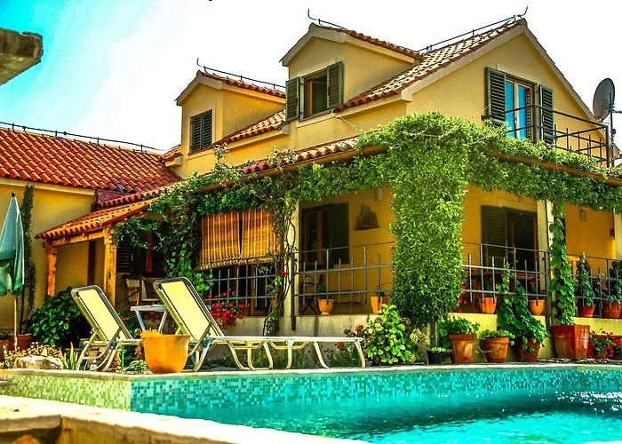 1 غرف نوم موفرة في Villa Kolacje التي تبعد اقل من 10 دقائق سيراً عن Olive Oil Museum Brac. ايضاً توفر المسبح الموسمي في الهواء الطلق وكذلك منطقة التشمُّس والتراس للتشمُّس وبركة السباحة الخارجية.